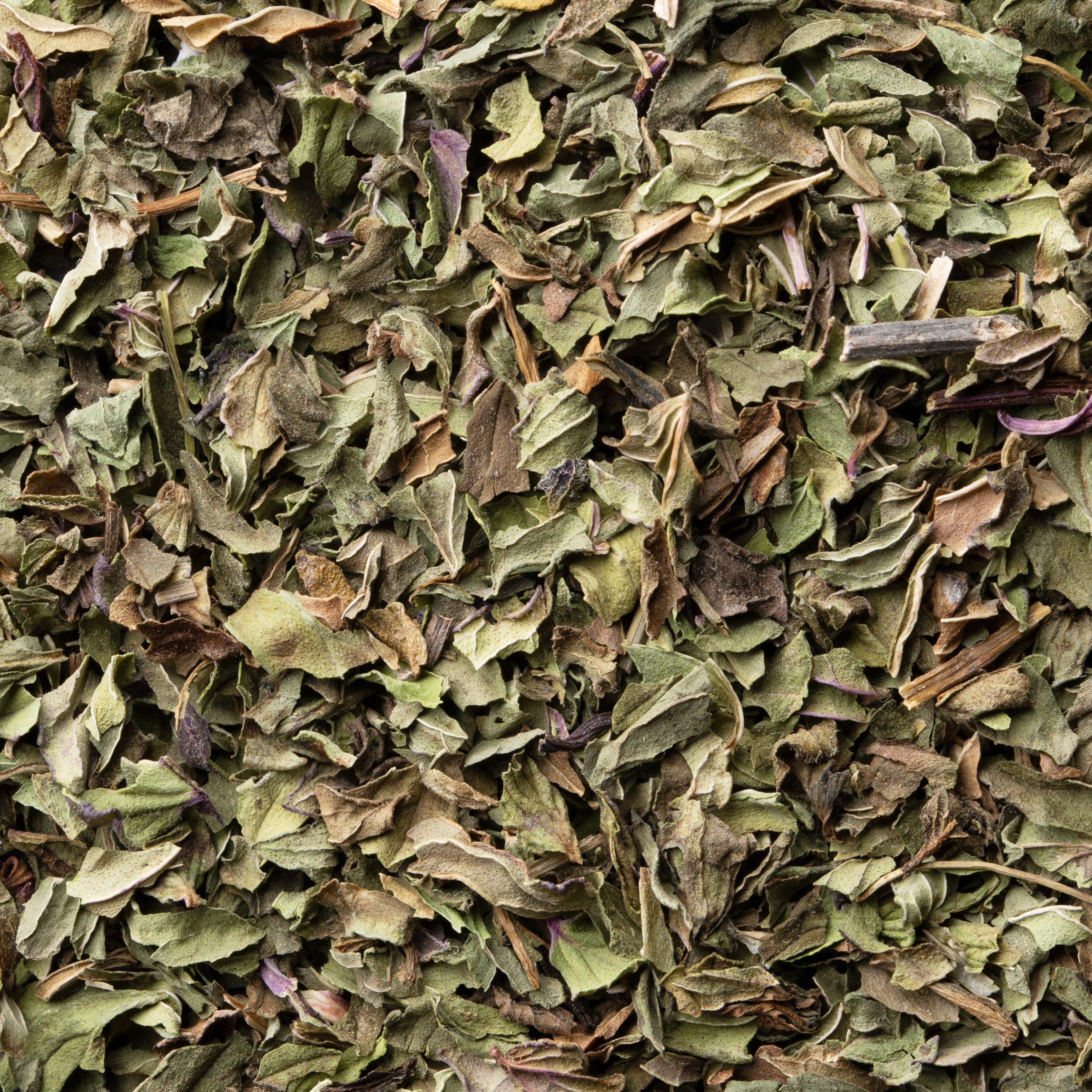 Pure peppermint leaves, specially cut to release a bold, minty-rich aroma.