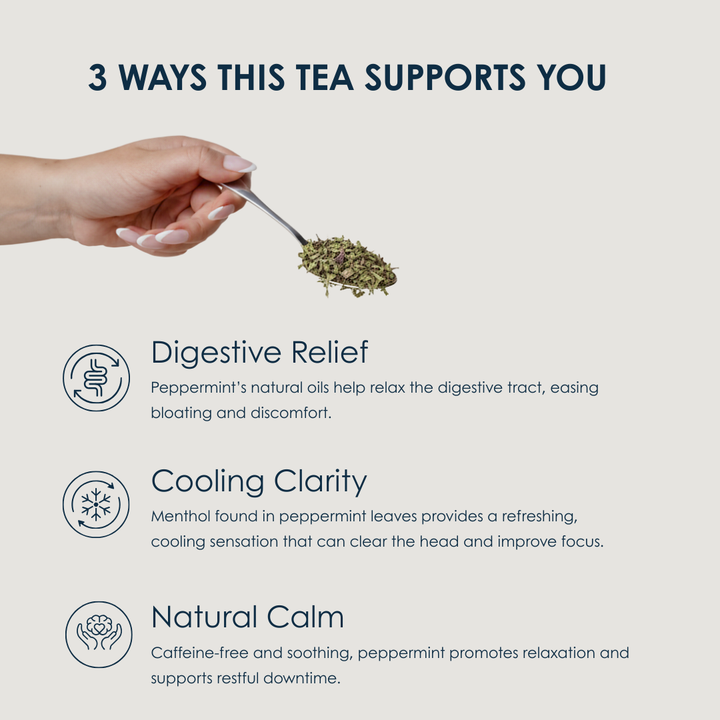 Experience the crisp, cooling lift of this special cut Peppermint Tea. Naturally vibrant and refreshing, it delivers a bold minty flavour with a clean, lingering finish. Peppermint is celebrated for its digestive benefits, helping to soothe bloating and support gut health.